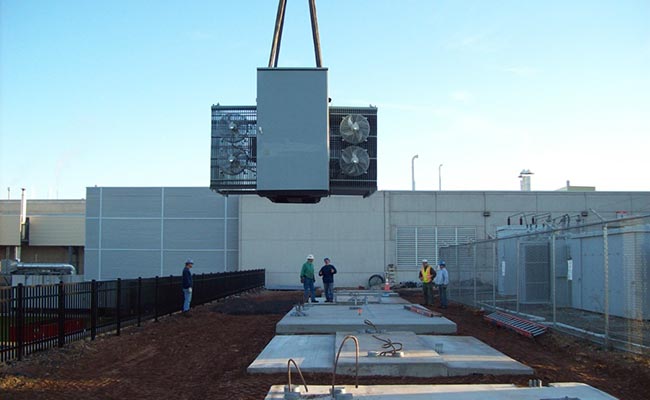 Stage 2 consisted of the replacement of (2) interior emergency generators; a 500 KW and a 350KW. A new 1MW Cummins exterior generator was installed outside of the existing electrical room. Upon completion of the testing and commissioning the feeds were terminated at the ATS’s under a scheduled shut down, the new emergency network was tested for a period of (30) days and then the existing generators were demolished.