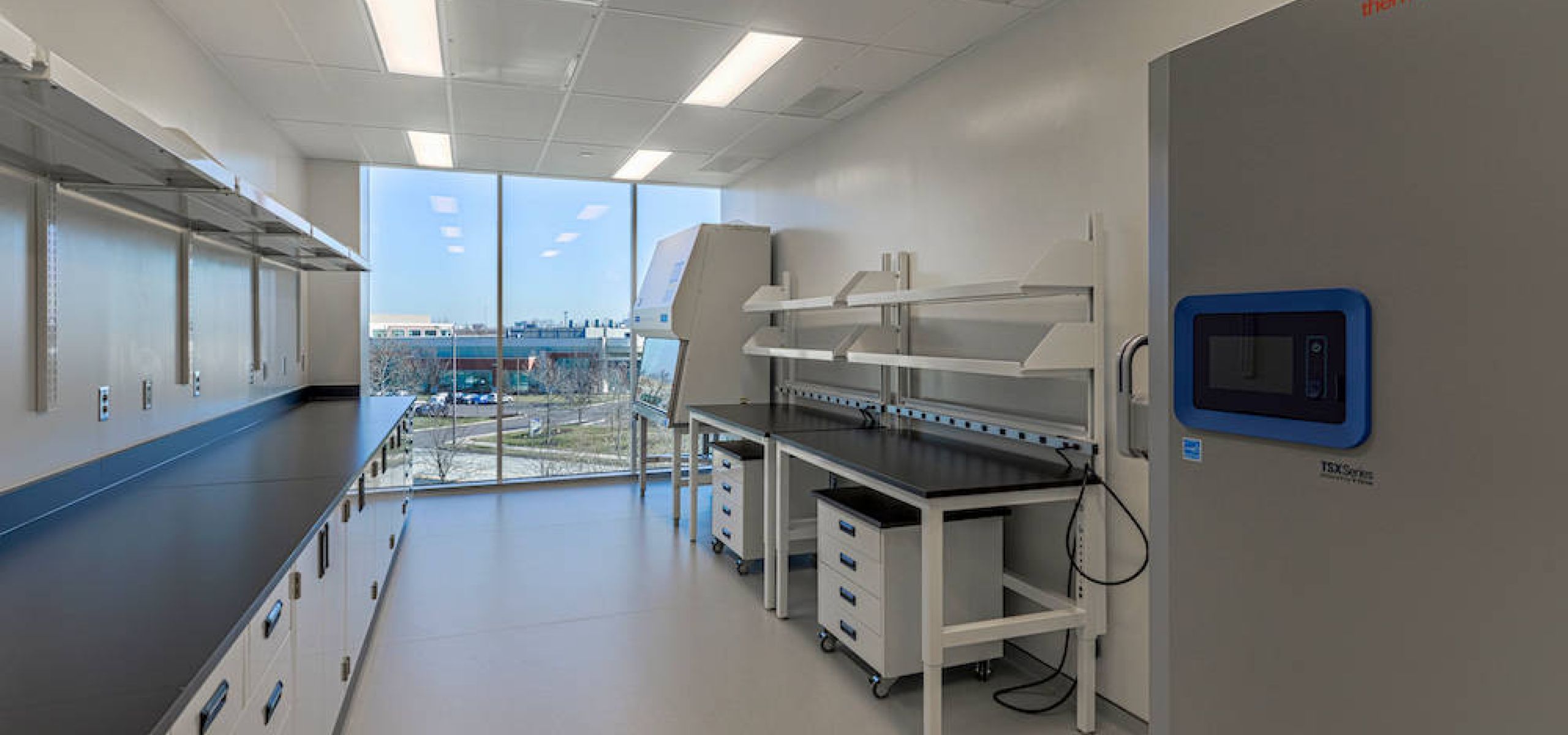 The second phase began approximately one month after the first phase and included 27,000 SF of new lab space to increase the client’s capacity to perform clinical testing and development. Phase two posed complexities from a technical and logistical perspective as it involved the purchase and integration of new infrastructure, including two air handling units, two chillers, two hydronic boilers, a low-pressure steam boiler, and a new 480V electrical service. The new equipment required tie-in to existing systems that were supporting active lab functions in the building. Cyma reviewed the drawings and existing systems and developed a comprehensive list of over one hundred tie-ins. The list was utilized to identify critical shutdowns impacting the client’s existing operations and allowed coordination to maintain the overall project schedule while accommodating the client’s business needs. Cyma was also able to ensure there was no unplanned outages to the client’s lab functions while this project was performed, and thus no impact to the client’s business.