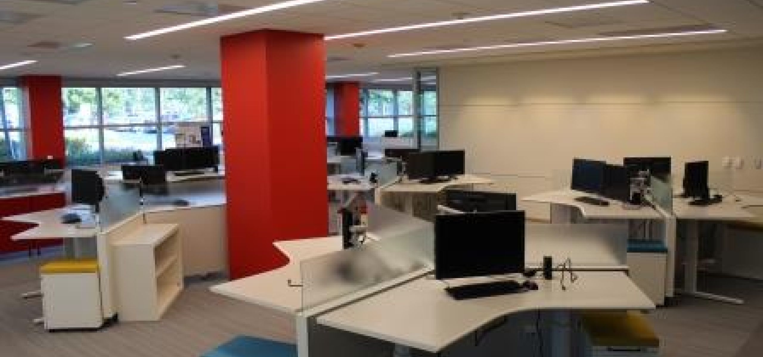 The work was phased over two separate phases to allow for a staged occupancy and to minimize the amount of temporary placement facilities for existing employees. The new floor plans were designed and constructed to achieve a more open and collaborative work environment with the installation of many teaming and huddle rooms, small conference rooms, and open area media centers. Finishes in general were extremely high end with new woven vinyl floor coverings, fabric panel wall systems, stone flooring, porcelain tile accent walls, and stone/granite mill work. In addition, a new multipurpose training center was also constructed for large conferencing capabilities. The existing MEP systems were reused to the greatest extent possible, with minor modification of branch duct work and redistribution of electrical and tele/data to new office/workstation locations.