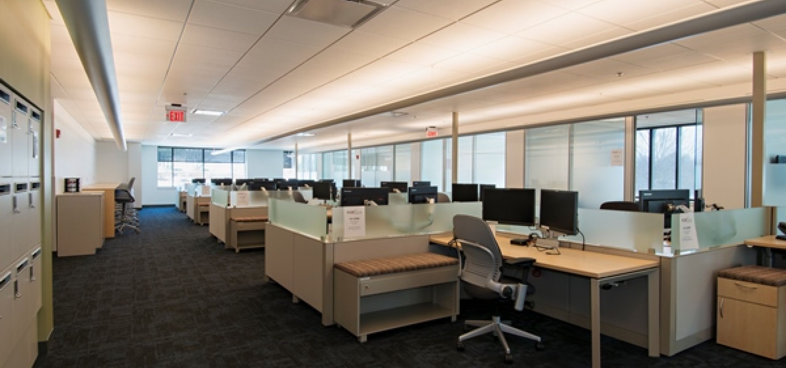This project is a continuation of company-wide office upgrades currently ongoing within this Fortune 500 Pharmaceutical company to provide a more flexible workplace. Project scope included architectural modifications to open up the floor plan, installation of glass-wall demountable partitions at office fronts and MEP upgrade to accommodate new furniture systems and changing floor plan. The work was performed strategically across two separate active buildings allowing for minimal impact to ongoing business operations. Cyma Builders handled management of all personnel moves and furniture installation as part of the construction process to ensure a seamless delivery. All construction activities were also coordinated with building-wide fire alarm upgrades to accomplish all work in parallel. The project schedule required the majority of work to be complete in November/December 2014, which was successfully achieved.