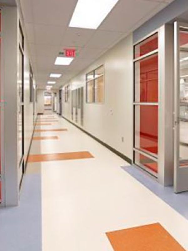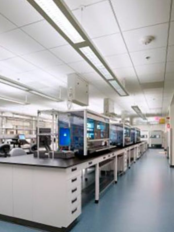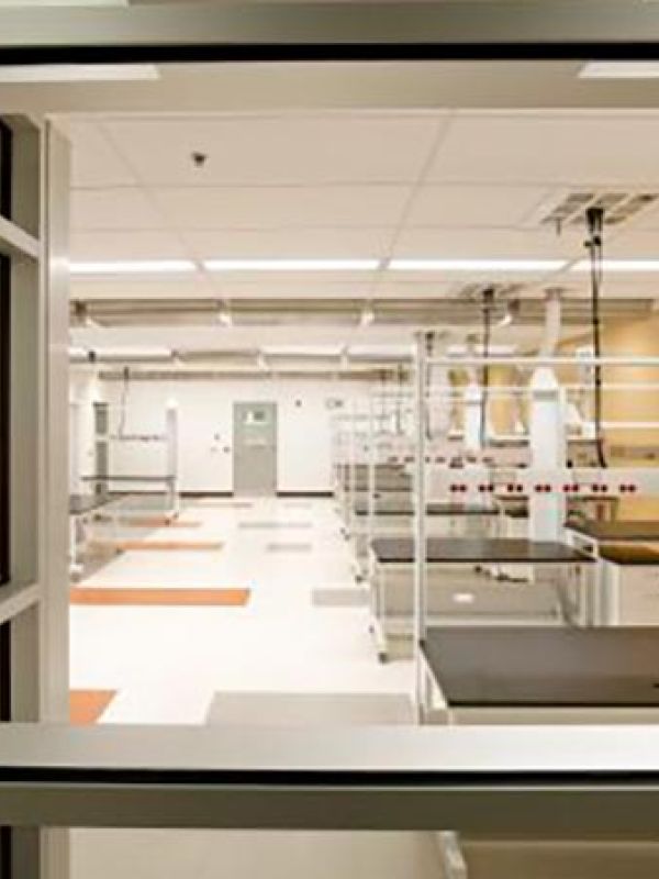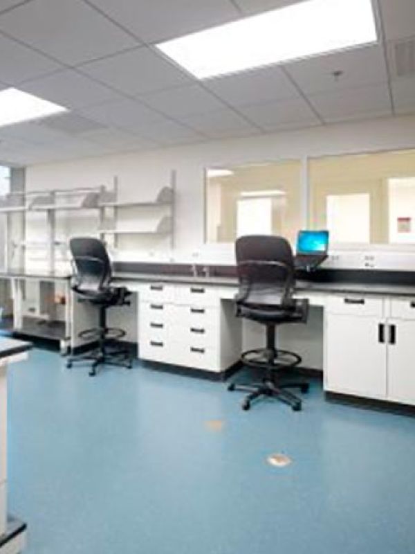 Major infrastructure upgrades for the process and plumbing systems of the project consisted of the pre-purchase and installation of a new duplex 200ACFM vacuum pump skid and liquid separator, packaged DI water mixing bed skid, softened water skid, vial washer, and glass washer assembly. New incoming domestic water, sanitary, and gas services were brought into the building from the existing utility company feeds outside of the building footprint. Compressed air, carbon dioxide, oxygen, helium, and argon gases were distributed throughout the labs via cylinders and automatic change over manifolds. A new liquid nitrogen system was installed along with a vaporizer to serve as the building’s gaseous nitrogen system.