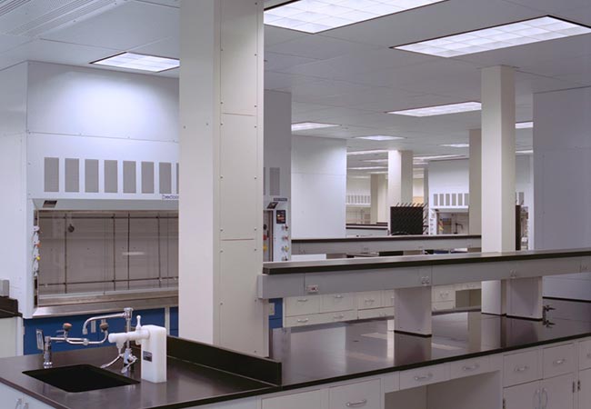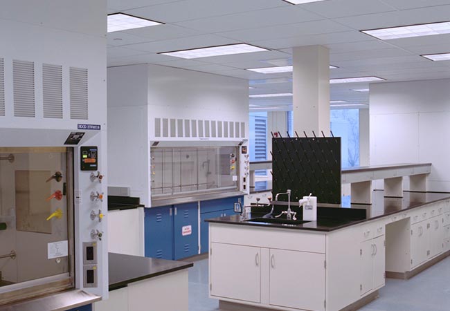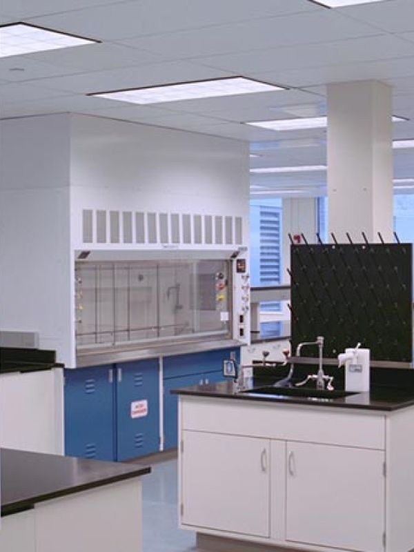 New work began with construction of a self-contained penthouse mechanical unit built to supplement (27) fume hoods. New piped gas utilities, a new DI water system, and new architectural finish package including lab grade millwork, working surfaces and fixtures were also required of this project.
